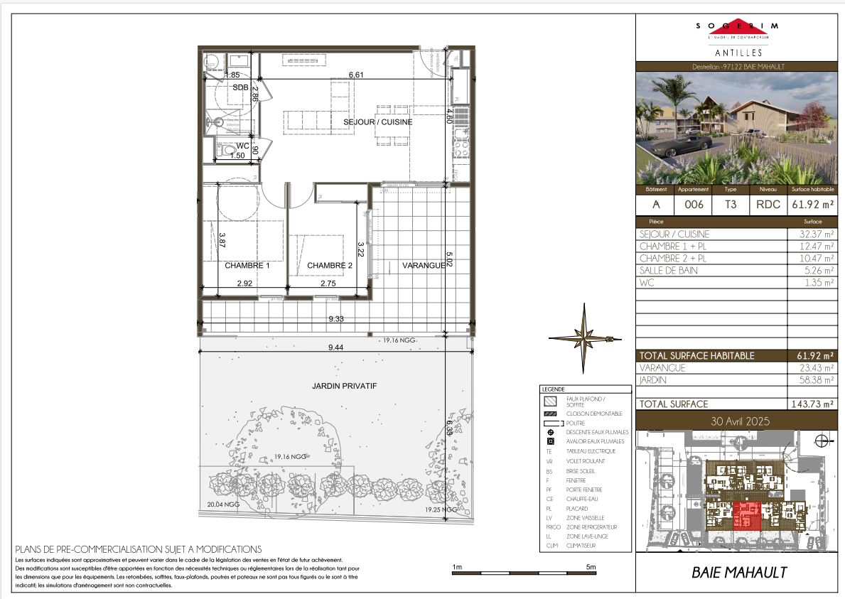 Plan T3 A006 - Rdc Surface habitable 61,92 m2
